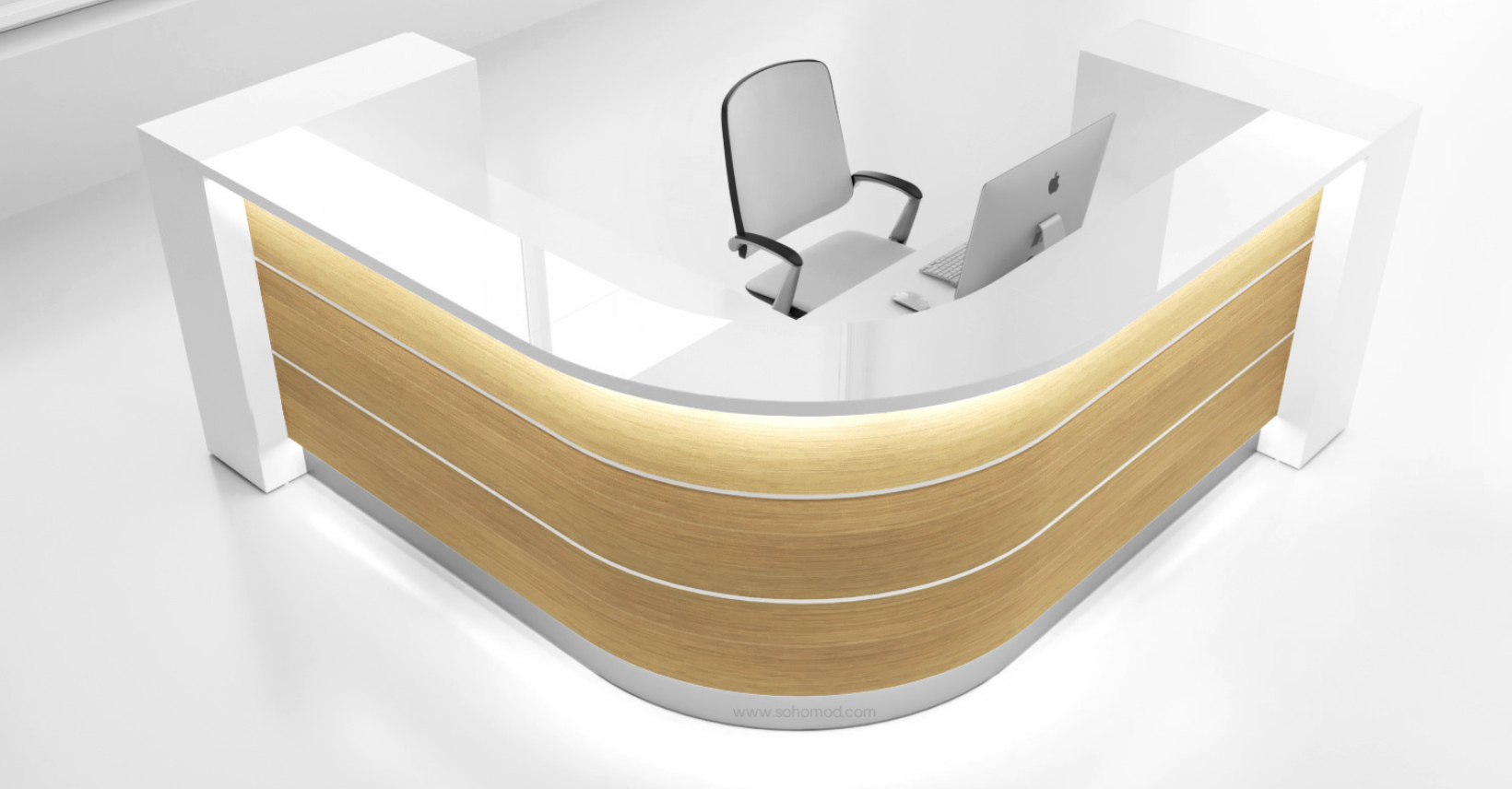 Moderný charakter a dynamický dizajn recepčnej jednotky VALDE bol navrhnutý tak, aby spĺňal požiadavky dnešnej recepcie. Vizuálne príťažlivá kombinácia skla, hliníka a vysokolesklého laminátu vytvára uvoľnený a elegantný celok.