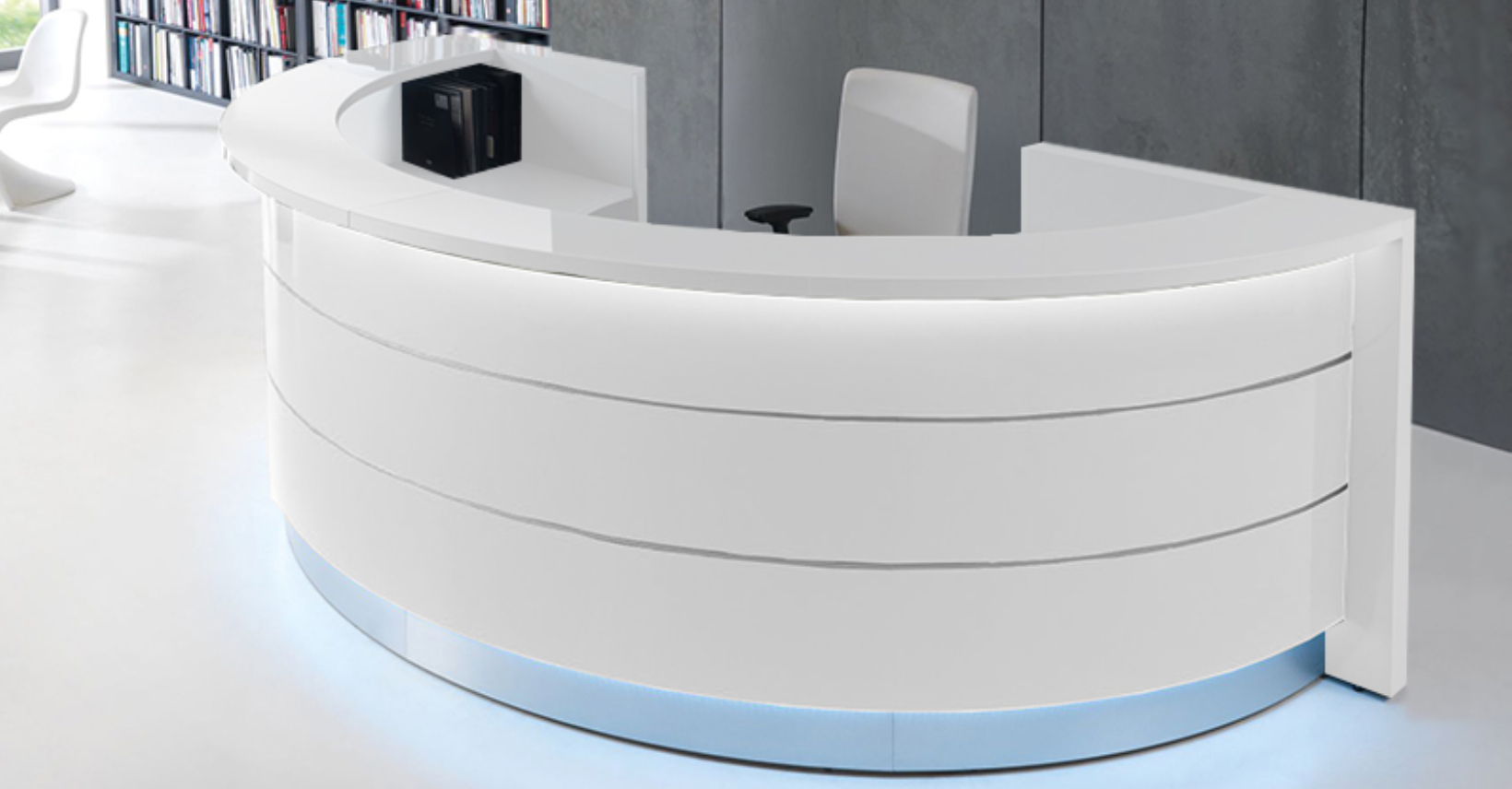 Moderný charakter a dynamický dizajn - to je recepčná jednotka VALDE, navrhnutá tak, aby spĺňala požiadavky dnešných recepcií. Vizuálne príťažlivá kombinácia skla, hliníka a vysokolesklého laminátu vytvára uvoľnený a elegantný celok.