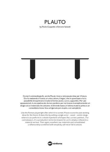 Pôvab stolíka Plauto spočíva v kvalite zvolených materiálov, dramaticky pôsobiacich tvaroch a remeselnom spracovaní. Dizajnér Paolo Cappello ho navrhol tak, aby sa stal reprezentatívnym stredobodom miestnosti a pútal pozornosť svojím luxusným vzhľadom. Podstavec je k dispozícii vo farbách jaseň, dub a orech. Stolová doska môže ladiť s podstavcom, prípadne si môžete vybrať majestátny mramor alebo keramiku v kamennej úprave. Ponúkame tri veľkosti stola. Vydajte sa teda cestou vysokého štandardu a vyberte si kúsok, ktorý nezostane bez povšimnutia.