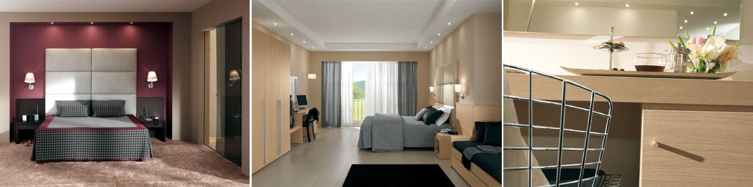 V tomto katalógu nájdete kompletné hotelové súpravy od popredných svetových výrobcov - moderné postele, šatníky a ďalší hotelový nábytok na mieru. Môžete sa informovať o kompletnej súprave moderného hotelového nábytku, t. j. o všetkých komponentoch zobrazených na ilustračnej fotografii. Ponúkame vám však aj možnosť výberu jednotlivých prvkov. Ponúkame vám aj služby nášho vlastného architekta, ktorý pre vás môže navrhnúť celkový interiér hotelovej izby v 3D vizualizácii na mieru. Poskytneme vám aj kompletný servis, t. j. následnú montáž a inštaláciu nábytku. Neviete, čo robiť? Pomôžeme vám! Zastavte sa na konzultáciu v našom showroome v Prahe!