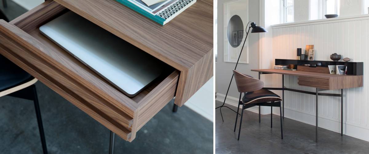 Minimalistický pracovný stôl HARRI je ideálnou voľbou pre tých, ktorí chcú elegantne zariadiť svoju kanceláriu alebo domácu pracovňu a uprednostňujú čistý, minimalistický štýl. Stôl stojí na jednoduchej štíhlej štvornohej podnoži z nehrdzavejúcej ocele, ktorá je v strede spojená krížom pre väčšiu stabilitu a vizuálny efekt. Pod obdĺžnikovou doskou z masívneho dreva s výraznou textúrou sa nachádza praktická priehradka na dokumenty alebo notebook. Na bočnej strane stola pri stene sa potom nachádza súbor menších otvorených a uzavretých praktických priehradiek na rôzne potreby. Partner pre maximálny výkon každý deň!