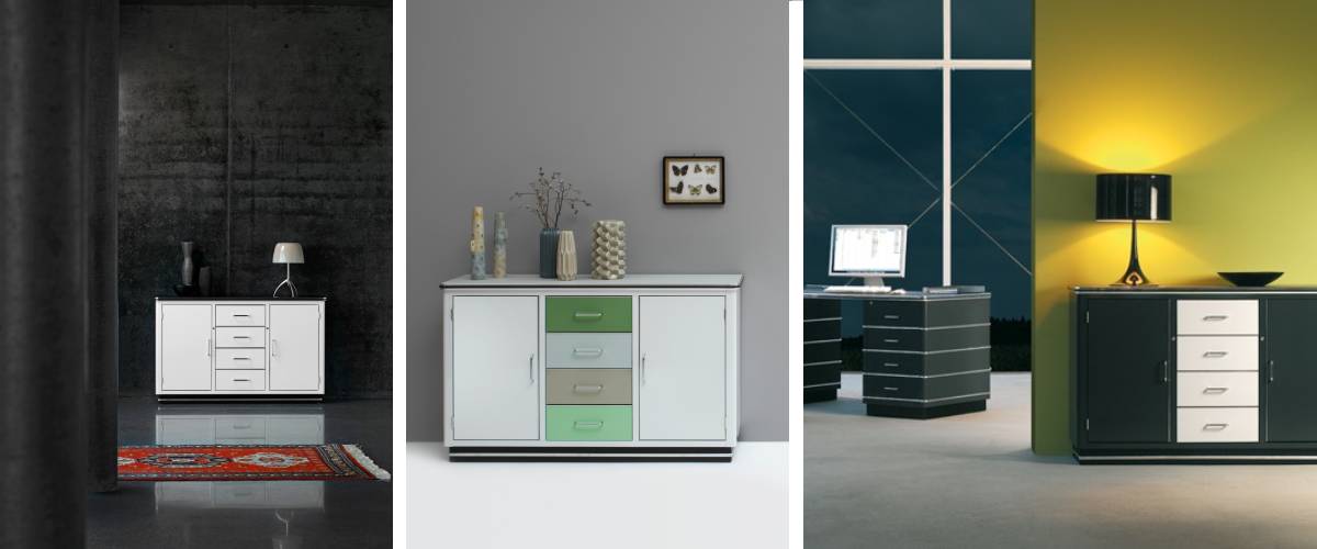 Luxusná komoda SB 123 je mimoriadne elegantná, funkčná, pevná a vysoko prispôsobivá so sklonom k dlhej životnosti. Tento kus je k dispozícii v širokej škále farieb a povrchových úprav, takže si z neho vyberie naozaj každý. Komoda sa skladá z 3 častí, pričom 2 krajné časti ukrývajú káblové zásuvky a stredná časť obsahuje 4 zásuvky. Zásuvky a skrinky majú jednoduché úchyty na jednoduchú manipuláciu.