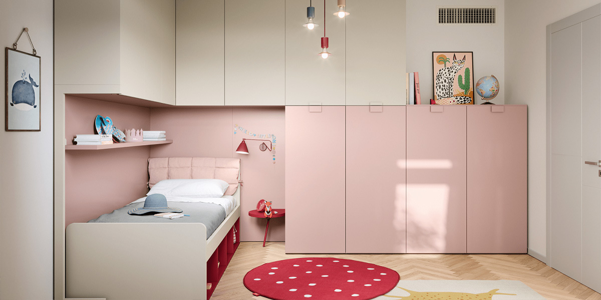 Izba je miestom, kde sa deti hrajú, snívajú, učia sa nové veci a budujú svoju osobnosť. Dokonale zladená zostava nábytku KIDS SPACE 10 bola zostavená tak, aby každý kus dával zmysel a vytvoril miesto pre rast detí vo veku 8 až 12 rokov. Kombinácia teplých neutrálnych odtieňov s červenou a ružovou bude dokonalou kulisou.
