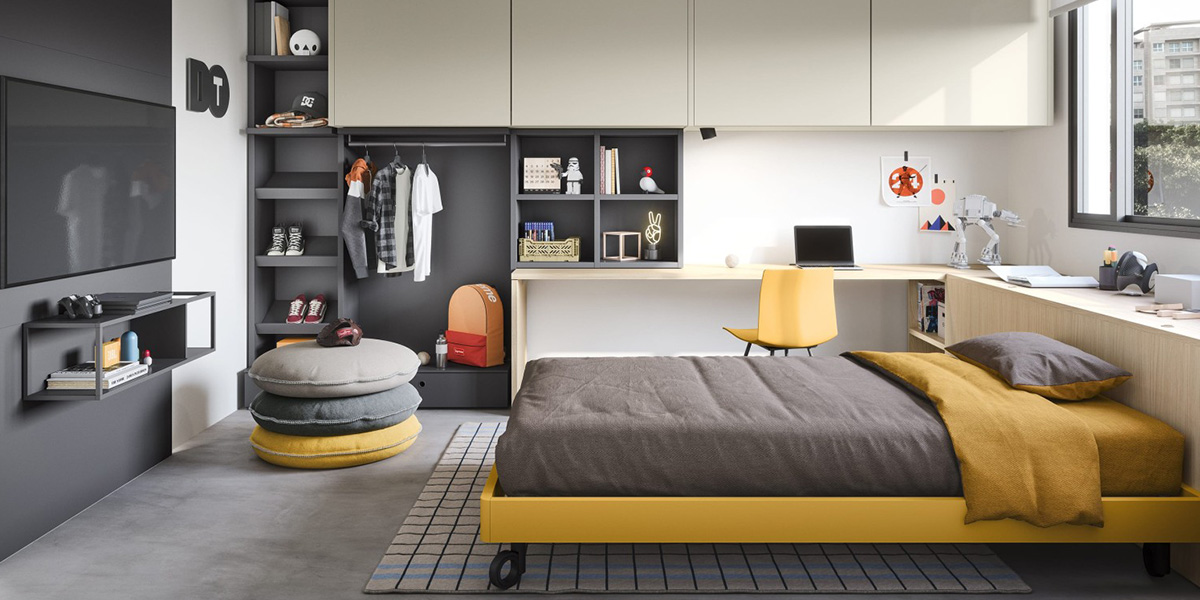 Tínedžeri potrebujú svoj vlastný špeciálny priestor. Už vedia, čo chcú, a postupne si budujú svoje veľké plány do budúcnosti. Potrebujú miesto nielen na spanie a učenie, ale aj na skúmanie, experimentovanie a zdieľanie. Dokonale zladená súprava nábytku KIDS SPACE 21 bola zostavená tak, aby každý kúsok dával zmysel a vytvoril miesto pre deti vo veku 13 až 16 rokov, kde môžu dospieť. Kombinácia dreva s krémovou a sivou spolu so žltými akcentmi bude dokonalou kulisou.