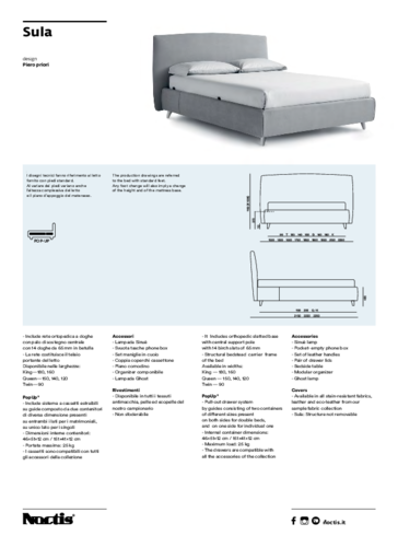 Jemný vzhľad modelu SULA vyvážene kombinuje zaoblené a rovné línie. Ponúka nekonečné možnosti kombinácií materiálov, farieb a doplnkov. Čalúnenie si môžete vybrať zo širokej ponuky látok a koží. Štruktúrované čelo je možné objednať na požiadanie. Nohy sú k dispozícii v niekoľkých prevedeniach. Tento model je možné obohatiť o zásuvky s viacerými možnosťami príslušenstva (nabíjačka, organizéry), úchyty, nočné stolíky alebo dokonca osvetlenie. V spálni si tak budete môcť vychutnať odpočinok presne podľa svojich predstáv.