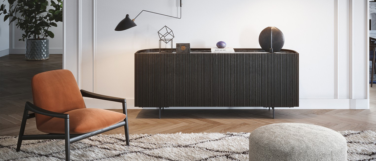 Dizajnová skrinka BAY s drážkovanými dvierkami