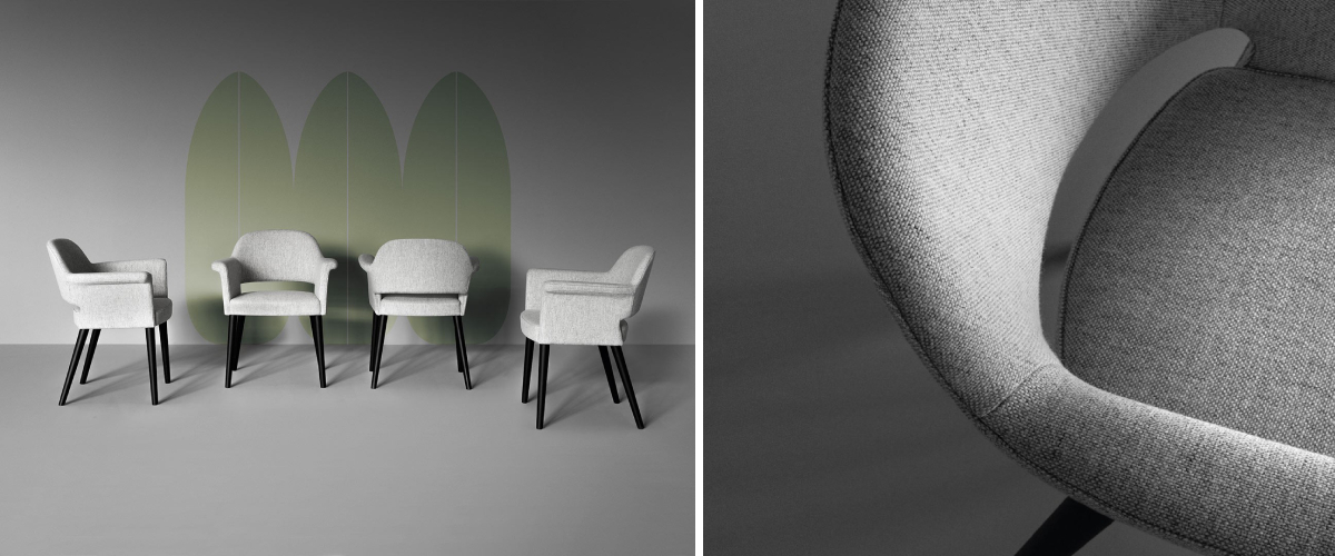Dizajnové kreslo DAFNE 109-12/1 navrhol Matteo Thun pre váš moderný interiér. Tvary kresla však čerpajú to najlepšie z klasického štýlu, zaoblené krivky zaručujú vynikajúce pohodlie. Toto elegantné kreslo stojí na robustnej štvornohej základni so zúženým párom zadných nôh pre dokonalú stabilitu. Je vyrobená z bukového dreva s možnosťou výberu morenia. Mäkko čalúnené sedadlo a operadlo s efektným priehľadným dizajnom, ktorý je užitočný aj pri manipulácii so stoličkou, sú k dispozícii v látke alebo koži podľa aktuálneho vzorkovníka. Možnosťou je aj čalúnenie vlastnou látkou. Kreslo DAFNE si tak môžete úplne prispôsobiť podľa vlastného vkusu a potrieb. DAFNE je ideálnym doplnkom pre komerčné prostredie, kancelárie a domácnosti.