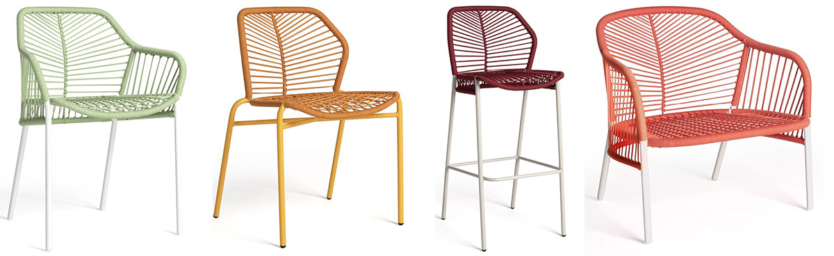 Inšpirovaná jemnou štruktúrou listu vytvorila dizajnérka Laura Silvestrinikolekciu LE FOGLIE, v ktorej hrá hlavnú úlohu lanový výplet na sedadle a operadle kresla. Lano vychádza z centrálneho rebra a vytvára vizuálny efekt žilkovania. Okrem toho poskytuje oporu a pohodlie. K dispozícii je niekoľko odtieňov, ktoré rozžiaria akýkoľvek priestor. Dokonca aj kovovú konštrukciu si môžete vybrať z niekoľkých odtieňov. Odolnosť voči poveternostným podmienkam, jednoduché čistenie a trvanlivosť zaručuje precízna výroba a maximálne kvalitné materiály. Bonusom je aj možnosť stohovania. Reštauračná záhrada, hotelová terasa alebo dokonca balkón, LE FOGLIE je ideálnou voľbou pre všetky príležitosti.