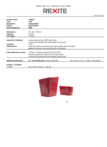 Jednoduchosť oživená diagonálnym rezom v hornej časti sa hodí do každej kancelárie alebo všade tam, kde potrebujete praktický a ľahký odpadkový kôš. Tabu je ideálnou voľbou pre každého, komu nie je ľahostajný dizajn každodenných predmetov. Na výber je široká škála farieb a k dispozícii je aj praktická nádoba na separovaný odpad. Kôš je tiež odolný voči vysokým teplotám.