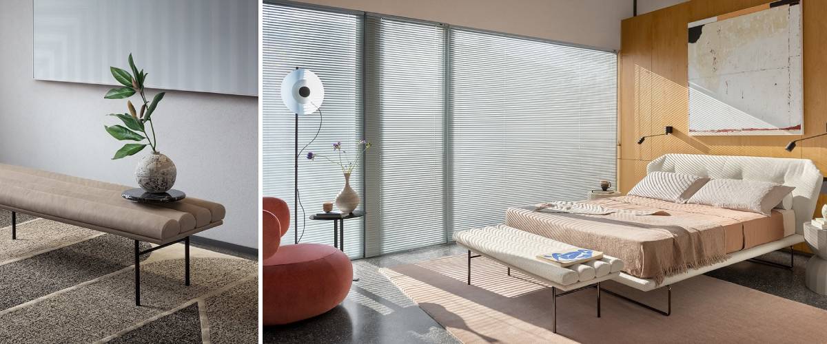 Dizajn lavice PAN FLUTE bol inšpirovaný typickým hudobným nástrojom domorodých indiánskych kmeňov. Do vášho interiéru tak vnesie jedinečnú harmóniu a upokojujúcu atmosféru. Minimalistický a elegantný štvornohý podstavec je k dispozícii v lakovanom kovovom alebo poniklovanom vyhotovení. Čalúnenie sbohatou textúrou je k dispozícii v pestrom katalógu materiálov a farieb a lavicu si môžete dokonca obliecť do vlastnej látky. Súčasťou lavice je malý okrúhly stolík z čierneho alebo bieleho mramoru, ktorý vytvára krásny optický detail. Lavicu môžete používať nielen na sedenie alebo odpočinok, ale aj ako neobvyklý úložný priestor. Rozvibrujte svoj domov tónmi pohody!