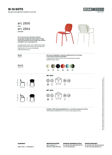 Hľadáte dizajnovú stoličku, na ktorú môžete zabudnúť v daždi? Stohovateľná stolička SI-SI od talianskej značky SCAB zaujme svojou ľahkou a veľmi praktickou kovovou konštrukciou, ktorá z nej robí dôstojný kúsok aj do exteriéru na. Môžete si vybrať z niekoľkých jemných odtieňov. Stohovateľnosť umožňuje stohovať stoličky na seba, čím sa šetrí miesto a uľahčuje sa manipulácia so stoličkami a ich skladovanie mimo sezóny. Tento model nájdete v našej ponuke aj s podrúčkami. Stoličku SI-SI dodávame v minimálnom množstve 2 kusov.