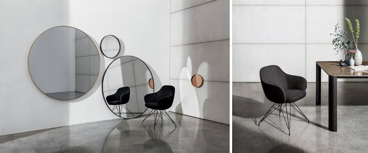 Cadira je novým poňatím pohodlného kresla s dizajnom, ktorý evokuje objatie rúk a zároveň má jednoduchú eleganciu, ktorá sa hodí do domácich aj kancelárskych interiérov. Drôtený podstavec je lakovaný v niekoľkých farebných prevedeniach. Sedadlo a operadlo si môžete objednať výlučne v čalúnení zo 100 % hovädzej kože, koženky alebo látky. Na výber je široká škála farebných možností. Kreslo Cadira je k dispozícii aj so zúženou základňou.