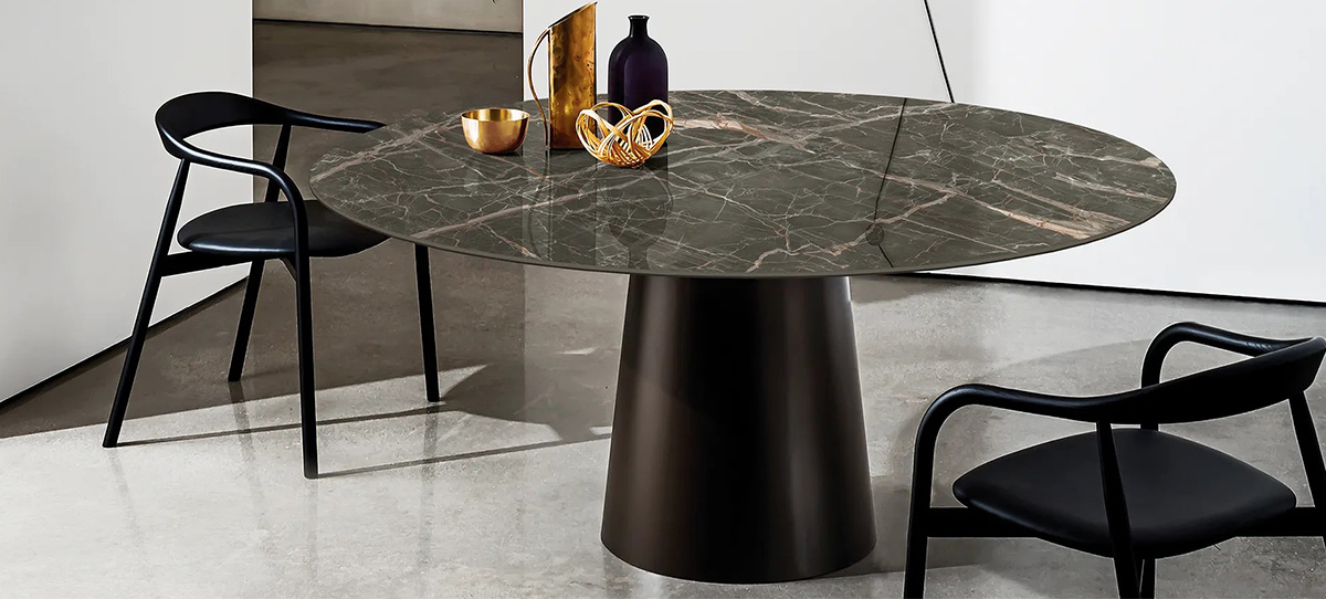Kolekce unikátních stolů z dílny špičkového italského výrobce Sovet je ztělesněním elegance a osobitosti. Základním prvekem je mohutná matná nerezová nebo lakovaná kovová základna, která podpírá desku ze skla, dřeva nebo keramiky. Stoly z kolekce Totem také lákají svou univerzáloností. Skvěle se budou vyjímat v každém prostředí, doma, v kanceláři nebo třeba v restauraci.