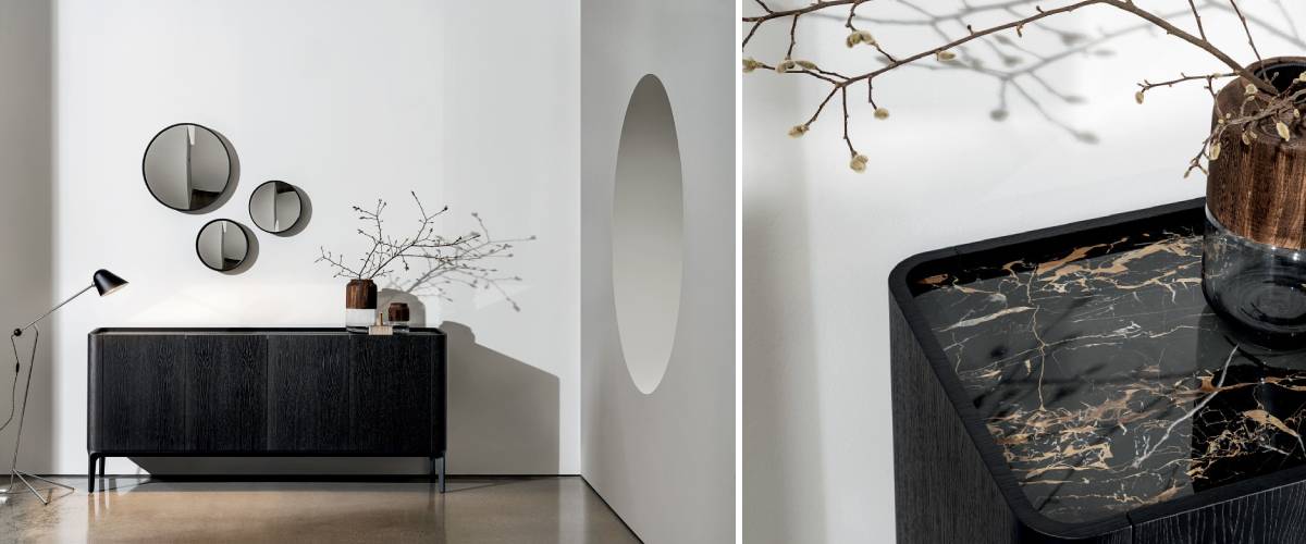 Prvotřídní materiály v luxusním provedení nemusí být křiklavé. V případě Luxusní skříňkay MADIA SLIM H24 od italské značky SOVET to platí dvojnásob. Bytelný dřevěný korpus v provedení ořech nebo mořený dub stojí na čtyřnohé hliníkové podnoži. Tu si můžete vybrat v 5 variantách povrchových úprav. Slutečnou třešinkou na dortu je však vrchní deska, která je na výběr různých odstínech keramiky s bohatou kresbou nebo síťovaného skla. Luxusní skříňka MADIA SLIM H24, která zapadne do každého nadčasového interiéru, je k dostání ve 2 velikostech.