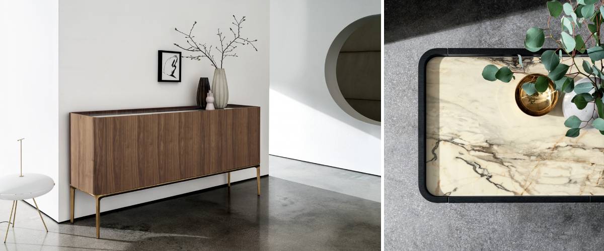 Prvotřídní materiály v luxusním provedení nemusí být křiklavé. V případě Luxusní skříňky MADIA SLIM H37 od italské značky SOVET to platí dvojnásob. Bytelný dřevěný korpus v provedení ořech nebo mořený dub stojí na čtyřnohé hliníkové podnoži. Tu si můžete vybrat v 5 variantách povrchových úprav. Slutečnou třešinkou na dortu je však vrchní deska, která je na výběr různých odstínech keramiky s bohatou kresbou nebo síťovaného skla. Luxusní skříňka MADIA SLIM H37, která zapadne do každého nadčasového interiéru, je k dostání ve 2 velikostech
