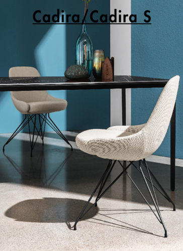 Cadira představuje nové pojetí pohodlné židle, jejíž provedení evokuje objímající náruč a zároveň mu nechybí jednoduchá elegance, která se hodí jak do bytového, tak kancelářského interiéru.Kuželovitá podnož je lakovaná v několika barevných úpravách. Sedák a opěrák můžete mít v exkluzivním v čalounění ze 100% hovězí kůže, kožence nebo v látce. Na výběr bohatá škála barevných variant. Židle Cadira se vyrábí také s drátěnou podnoží.