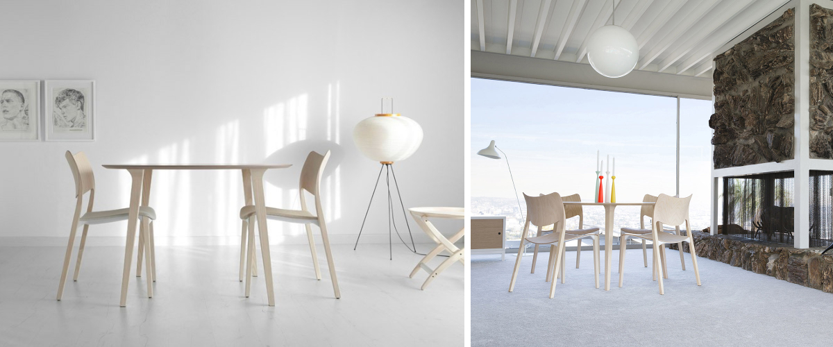 Nohy stolu jsou mírně vytočené, čímž stůl získává na lehkosti. S okrajem stolní desky plynule přechází do jednoho tvaru a vytváří tak unikátní kontury stolu LAU.