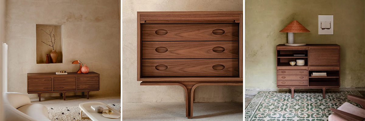 Ikonický designér a architekt Gianfranco Frattini navrhl v 60. letech minlého století komodu SERIE 500 pro nový způsob bydlení, který kombinuje potřebu funkčnosti a zároveň špičkové estetiky a kvality. A značka Tacchini nyní tento ikonický kousek reinterpretuje v nové podobě. Tři kontejnerové prvky za okenicemi ukrývají zásuvky i dřevěné či skleněné police. Základna zpevněná stojnými prvky ve tvaru písmene T zajišťuje absolutní stabilitu. Komoda je vyrobena z ořechového dřeva. Do interiéru vnese luxusní prvek i útulnost a hodí se jak do jídelny či obývacího pokoje, tak do reprezentativních prostor kanceláře. SERIE je dostupná také jako vyšší příborník.