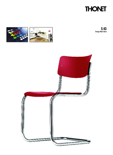 Jednoduchý tvar, decentní estetika a vylepšený komfort sedáku a opěráku židle S43 PV se nese v pravém duchu modernismu. Čalouněný a dobře tvarovaný sedák z tvarované překližky s povrchovou úpravou v přírodním buku je zárukou pohodlí a díky tomu si vaše posezení ještě více užijete. S43 PV je kvalitní židle v moderním designu, který se hodí do všech současných interiérů. Židle se rovněž nabízí v lakovaném provedení sedáku a opěráku nebo s povrchovou úpravu v přírodním dubu. Vnitřní strana sedáku a opěráku je čalouněná v látce, v kůži anebo také v látce dodané klientem.