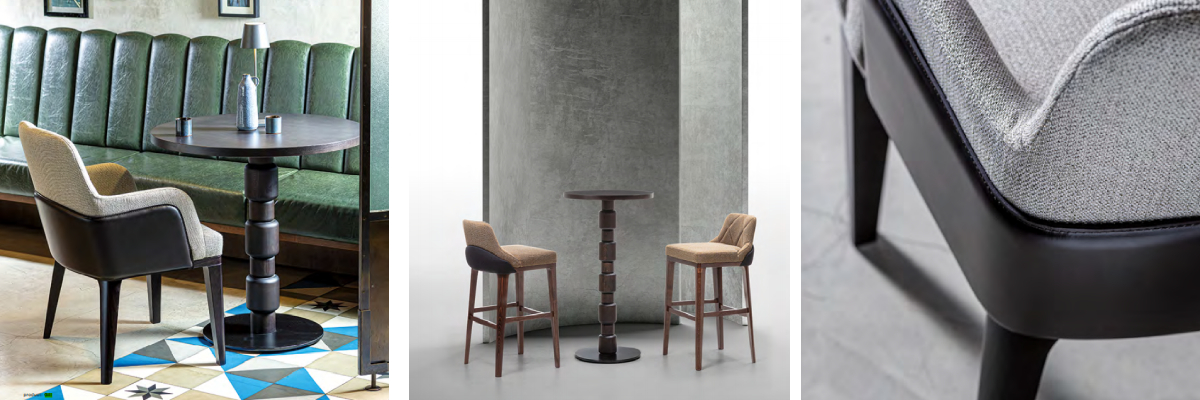 Hledáte sedací nábytek, který už od pohledu vyzařuje maximální komfort? Kolekce Gill se pyšní měkkým polstrováním, kvalitním čalouněním a masivní dřevěnou podnoží, což z ní dělá ideálním kandidátem na vybavení vysoce frekventovaných prostor jako jsou restaurace nebo hotelová lobby. Tak dopřejte sobě i svým hostům kvalitní posezení ve velkolepém stylu.
