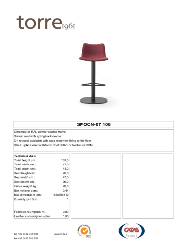 Minimalistická barová židle SPOON se zrodila pod taktovkou designérského dua Carlesi Tonelli. Otočná kovová podnož je k dostání v několika atraktivních odstínech laku. Bohatá nabídka textilního i koženého čalounění zaručuje, že tento kousek jednoduše sladíte se zbytkem vybavení interiéru. Je možné dodat i vlastní materiál. Kolekce SPOON zútulní jak soukromou jídelnu, tak hotel, restauraci nebo kancelářské prostory. V případě jakýchkoli dotazů nás neváhejte kontaktovat.