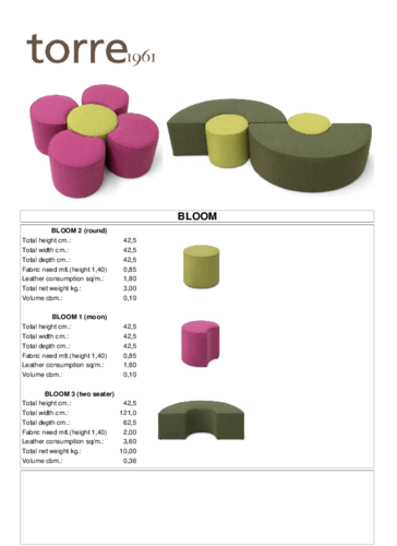 Pouf BLOOM do interiéru vnese hravost a poslouží jako podnožka nebo posezení. Přináší svobodu při tvoření různých kompozic, díky svému tvaru měsíčního srpku do sebe jednotlivé kousky zapadají a dávají vzniknout lavicím, ostrůvkům a nejrůznějším útvarům. Fantazii se meze nekladou, a tak lze kombinovat i poufy různých barev. Vybírat můžete z široké škály čalounění včetně možnosti dodání svého vlastního materiálu. Na dotaz je možné zhotovit prošívané strany. BLOOM se hodí do obývacího pokoje, relaxační zóny nebo třeba dětského koutku.