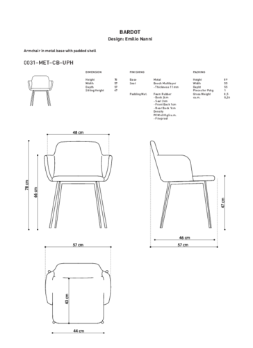 Designér Emilio Nanni se postaral o to, aby židle BARDOT perfektně zapadla do domácího i komerčního prostředí. Kovová kónická podnožje k dispozici v několika odstínech laků a povrchových úpravách. Sedák, opěrák a područky jsou čalouněny materiálem dle vlastního výběru. Vybírat můžete z široké škály textilií nebo kůží. V případě zájmu lze dodat svou vlastní látku. Židle je žáruvzdorná a minimální objednatelné množství jsou 2 kusy. Tak vybavte svou domácí jídelnu nebo trendy kavárnu komfortním a nadčasovým kouskem, který vydrží dlouhou řadu let. V případě jakýchkoli dotazů nás neváhejte kontaktovat.