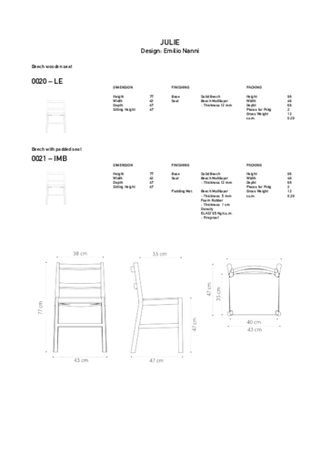 Designér Emilio Nanni se postaral o to, aby židle JULIE perfektně zapadla do domácího i komerčního prostředí. Konstrukce z masivního buku je k dispozici v několika odstínech moření či lakování barvami ze vzorníku RAL. Minimální objednatelné množství jsou 2 kusy. Tak vybavte svou domácí jídelnu nebo trendy kavárnu komfortním a nadčasovým kouskem, který vydrží dlouhou řadu let. V případě jakýchkoli dotazů nás neváhejte kontaktovat.