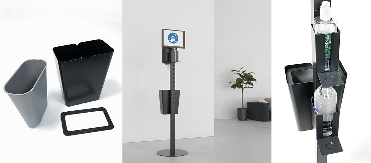 Ideální pomocník do škol, obchodů, restaurací, kanceláří i hotelů. Odpadkový koš CLEAN řeší hygienické potřeby i skladování odpadu. Stabilní základna z práškově lakované oceli nese nádobu na odpadky s vyjímatelnou nádobou ze 100% recyklovatelného plastu, kterou snadno umyjete i v myčce. Díky otvorům na stojanu se sami můžete rozhodnout, do jaké výšky umístíte jednotlivé komponenty. Vybírat pak můžete z malé či velké nádobky na mýdlo či dezinfekci (zvolit můžete i oba), bezdotykového dávkovače, držáku na utěrky nebo na ceduli. Vše si sami zvolíte v konfigurátoru.
