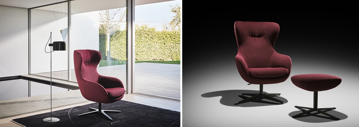 Podnožka LUCILLE ztělesňuje harmonické propojení minulosti se součastností. Časem prověřené, ikonické tvary sedáku a čtyřramenné kovové podnože jsou nyní oblečeny do moderního kabátu. Čalounění je dostupné v nepřeberné paletě barev, včetně nabízené možnosti dodání vlastního materiálu. LUCILLE je nezbytným doplňkem ke stejnojmennému křeslu, ale lze ji využít i samostatně.