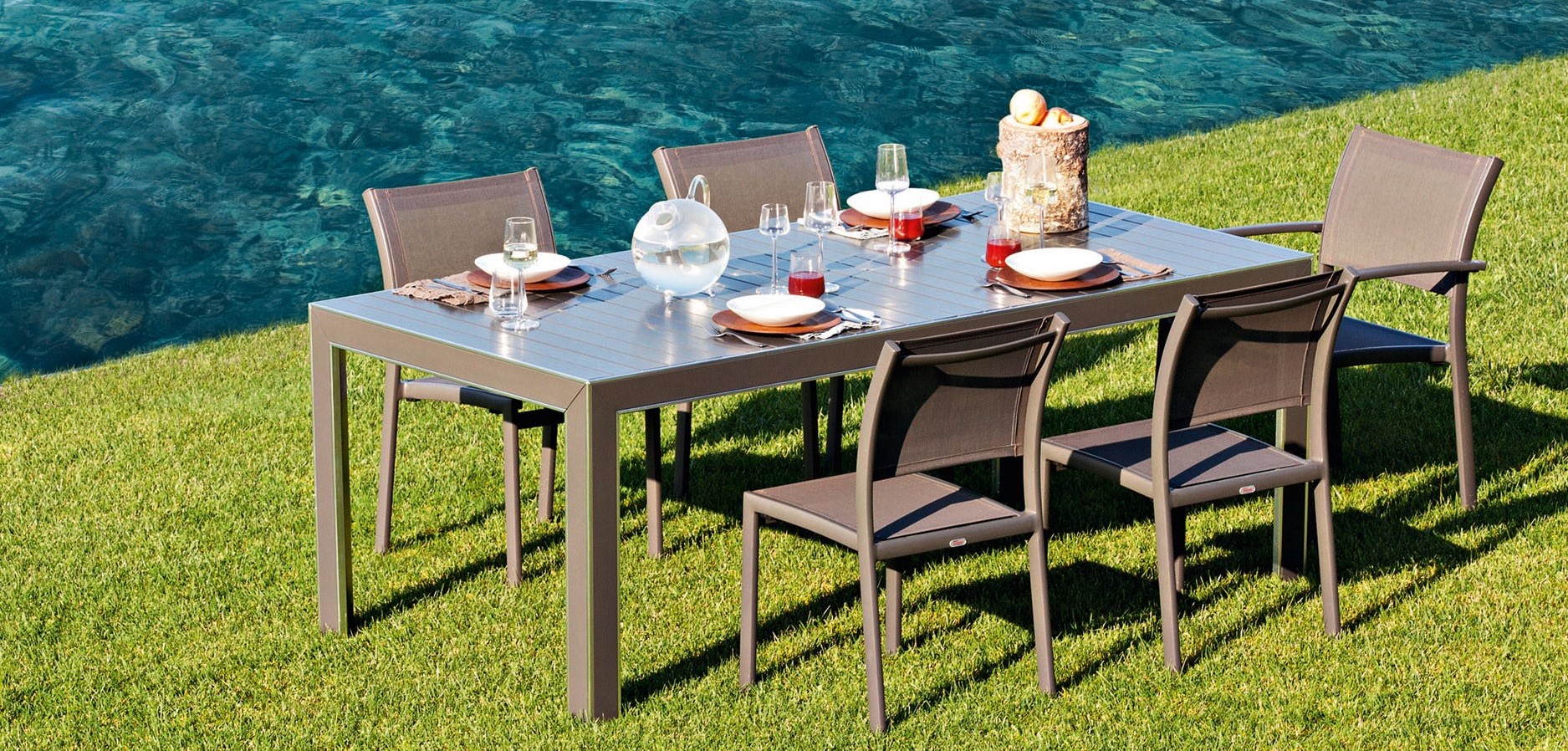 Kolekce VICTOR zahrnuje stoly a konferenční stolky s hliníkovou konstrukcí a židle s hliníkovou nebo týkovou strukturou. Sedadla a opěradla jsou vyrobena z několika kategorií pevných omyvatelných látek a vybrat si můžete z mnoha barevných variant. Kolekce spojuje minimalistický styl a praktické odolné provedení. Hodí se na zahrady rodinných domů nebo i hotelů.