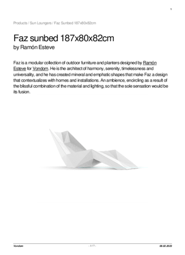Unikátní lehátko FAZ inspirované přirozenými tvary krystalů je vyrobeno z recyklovatelného polyetylenu. Díky lehkosti tohoto materiálu se s lehátkem snadno manipuluje a je nenáročné na údržbu. Model je k dostání v mnoha barevných variantách - od matného po lesklý finiš. Model lze zakoupit i se zabudovaným LED osvětlením pro vytvoření příjemné intimní atmosféry. Pro celistvý vzhled kombinujte spolu s konferenčním stolkem FAZ.