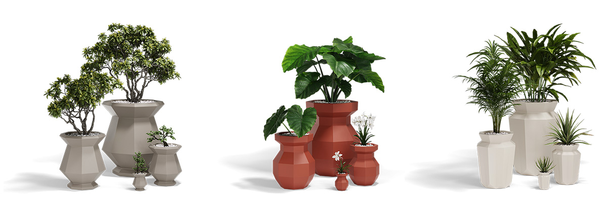 Hravá zákoutí na zahradě i terase, velkolepý vchod do domu nebo ozdoba interiéru? Kolekce ORIGAMI splní vše! Geometrické sochy i moderní obaly na květináče z polyethylenu odolají všem povětrnostním vlivům a vnesou do všech prostor radost. Některé kousky jsou dokonce dostupné i ve svítící variantě, která se postará o romantickou atmosféru.