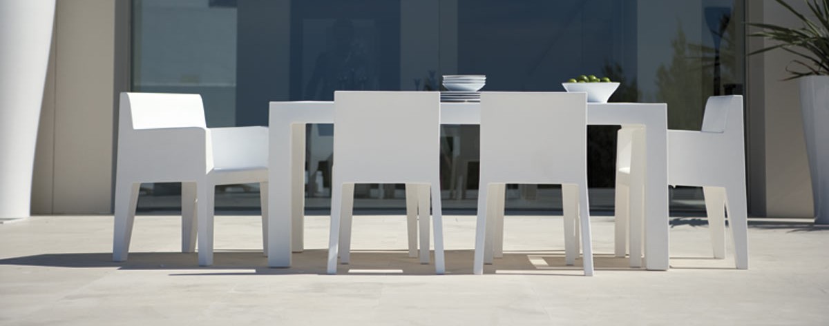 Kolekce JUT je první sbírkou minimalistického nábytku vytvořenou studiem Vondom. Design celé kolekce je zaměřený na geometrické tvary a něžnou jednoduchost. Nábytek se skvěle hodí do exteriéru či interiéru a díky jeho nadčasovému provedení zapadne do jakéhokoliv moderního prostředí. Materiálem je 100 % recyklovatelný polyethylen, který zároveň usnadňuje manipulaci a údržbu nábytku.