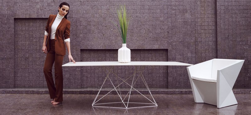 Unikátní stůl FAZ XL inspirovaný přirozenými tvary krystalů je vyrobený z HPL a nerezové oceli. Díky lehkosti tohoto materiálu se se stolem snadno manipuluje a je nenáročný na údržbu. Deska stolu je k dostání ve dvou variantách - celobílá a HPL. Pro celistvý vzhled kombinujte spolu s židlemi FAZ.