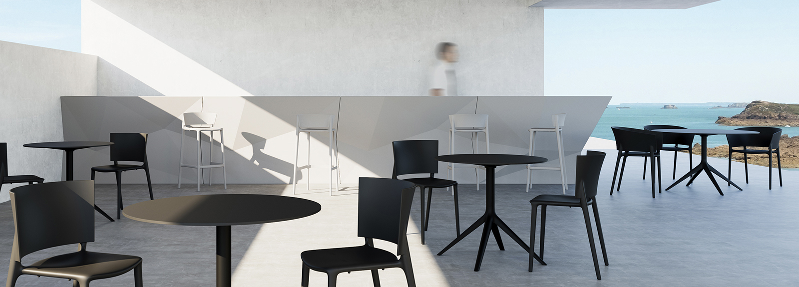 V jednoduchosti je krása. Rozhodně to platí pro minimalistické židle z kolekce AFRICA. Oceníte i jejich praktičnost, jelikož jsou vhodné do interiéru i exteriéru a navíc jsou stohovatelné. Židle jsou dostupné v několika barevných provedení a lze volit mezi matným a lakovaným finišem. Tento model je k dispozici také v ekologické variantě Revolution. Jedná se o recyklovaný a dále recyklovatelný materiál. Provedení MANTA pochází ze sběru a recyklace rybářských sítí, CALA je vyrobena z plastů z Baleárských ostrovů a MILOS je speciální bílou barvou vzniklou přeměnou plastů posbíraných na středomořských plážích. Za příplatek lze také pořídit pohodlný podsedák.