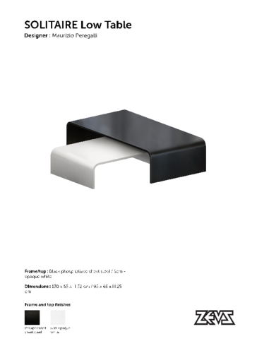 Konferenční stůl SOLITAIRE od italské značky ZEUS je vyroben z jediného silného kovového plátu. Jeho oblé tvary pak ještě více podtrhují stylovou plynulost a neporušnost. Stůl je k dispozici ve 2 velikostech v černém a bílém provedení. Tento model má rozměry 130 x 65 cm. Variabilní kus nábytku, který využijete v obývacím pokoji nebo různých společenských místnostech, kde si rádi posedíte u šálku kávy. Čistý styl bez zbytečných příkras. Elegantní jistota, na kterou se můžete spolehnout každý den!