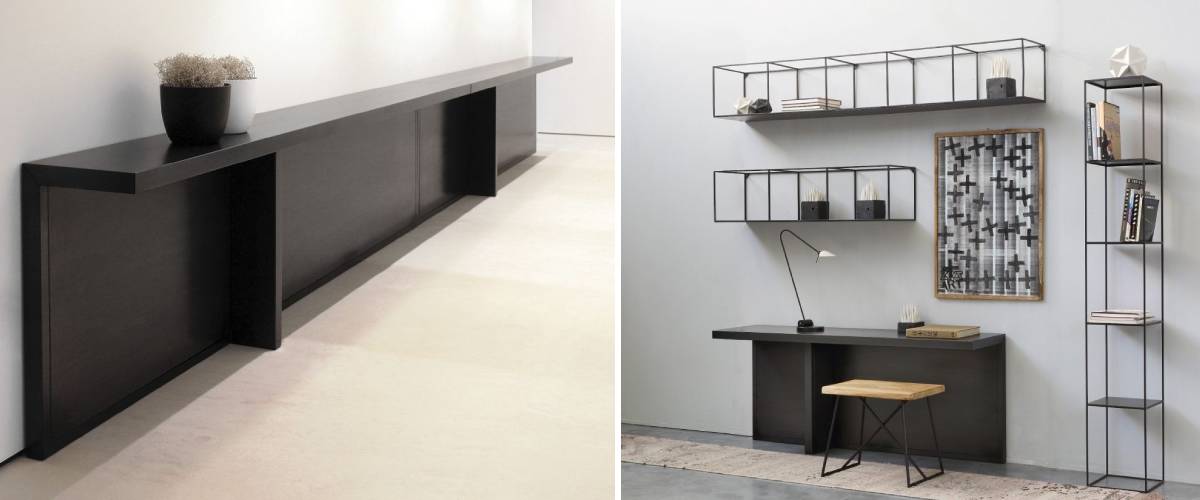 Konzolový stůl ATRIUM CONSOLE od italské značky ZEUS je vyroben z bytelných kovových plátů perfektně uspořádaných pro efektivní přimknutí ke zdi. Jeho klasické strohé tvary podtrhují absolutní stylovou plynulost a neporušnost. Stolek je k dispozici v černém nebo bílém provedení a 3 velikostech. Pokud připojíte více kusů stolu za sebe, získáte praktickou výstavní nebo pracovní plochu vhodnou zejména do veřejných a komerčních prostor. Variabilní kus nábytku, který nabízí 1000 a 1 způsob využití!