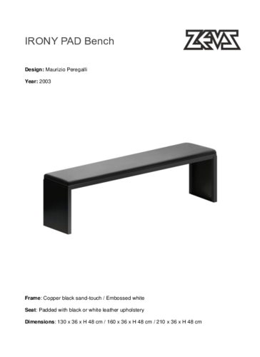 Designová lavice IRONY PAD v šířce 160 cm od italské značky ZEUS vás podrží za jakýchkoli okolností. Na první pohled zaujme zejména její bytelná konstrukce a luxusní polstrování. Odolný rám z lakovaného kovu nabízíme v černé nebo bílé barvě dle vašeho výběru. Sedák lavice je čalouněný bílou nebo černou koženkou. Pro stylovou lavici jistě najdete 1000 + 1 způsob využití, zejména v pracovně nebo ve společenských a komerčních prostorech. Čistota a jednoduchost, která vás bude bavit!