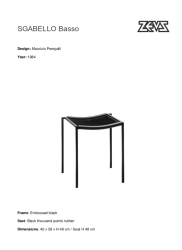 Designová stolička SGABELLO BASSO od italské značky ZEUS se superštíhlými liniemi působí jako dotek motýlích křídel. Křehkost je však v tomto případě pouze zdánlivá. Odolný rám z lakovaného kovu v černé barvě vydrží hodně a navíc skvěle vypadá. Sedák židle je gumový s drobnými protiskluzovými výstupky. Pro vaše pohodlí jsou okraje sedáku vpředu a vzadu olemovány silnější vrstvou gumy. Posezení doslova na pavoučích nohách, kde víc už zkrátka nepotřebujete! Jste připrveni vystoupit z řady?